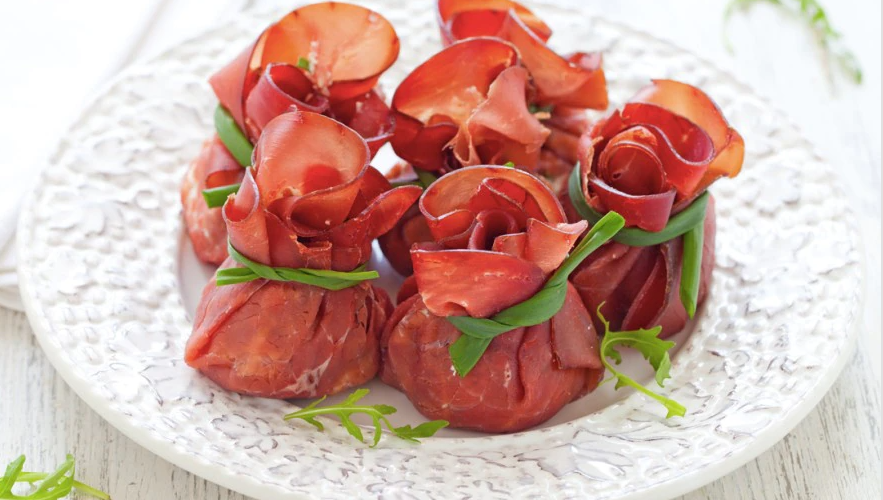 Fettine di bresaola che racchiudono un cuore di ricotta vaccina “Caseificio La Valle” e noci, la cui dolcezza è smorzata dalla nota leggermente piccantina della rucola fresca biologica, in un invitante fagottino… uno tira l’altro.