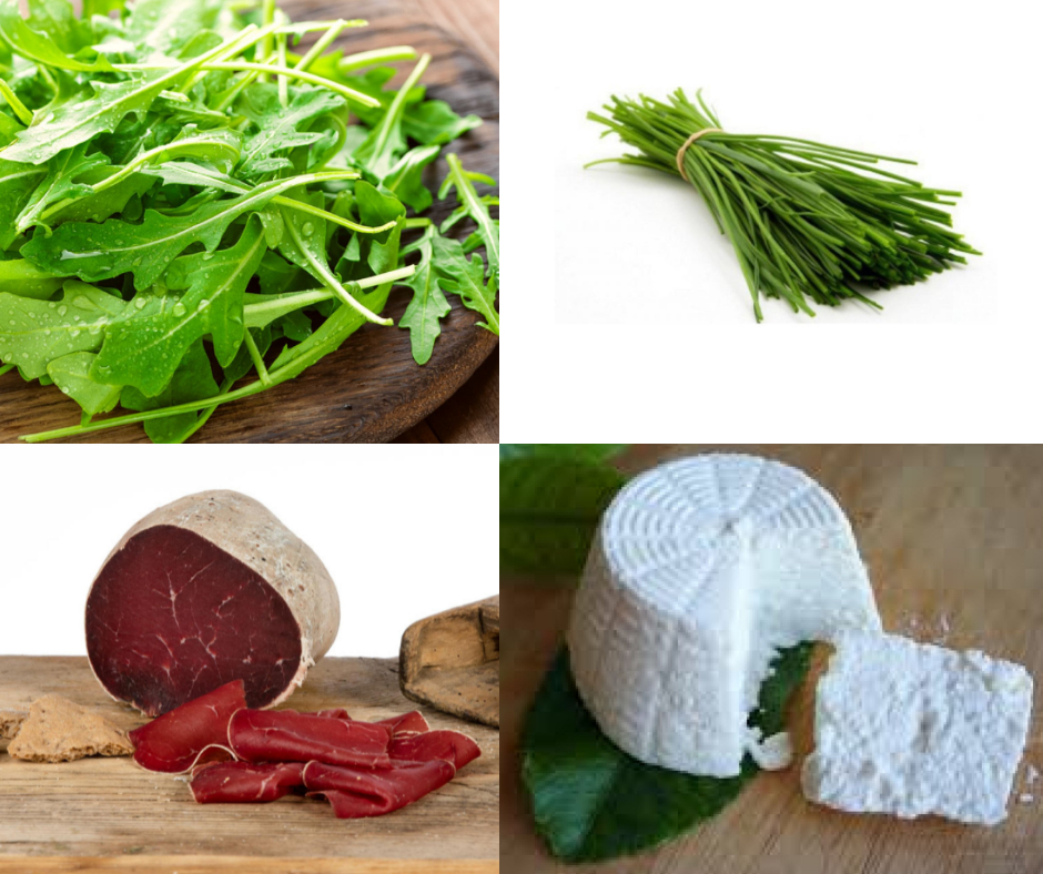 Fettine di bresaola che racchiudono un cuore di ricotta vaccina “Caseificio La Valle” e noci, la cui dolcezza è smorzata dalla nota leggermente piccantina della rucola fresca biologica, in un invitante fagottino… uno tira l’altro.