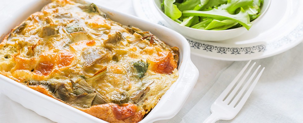 Pasticcio di pollo, carciofi e scamorza affumicata
