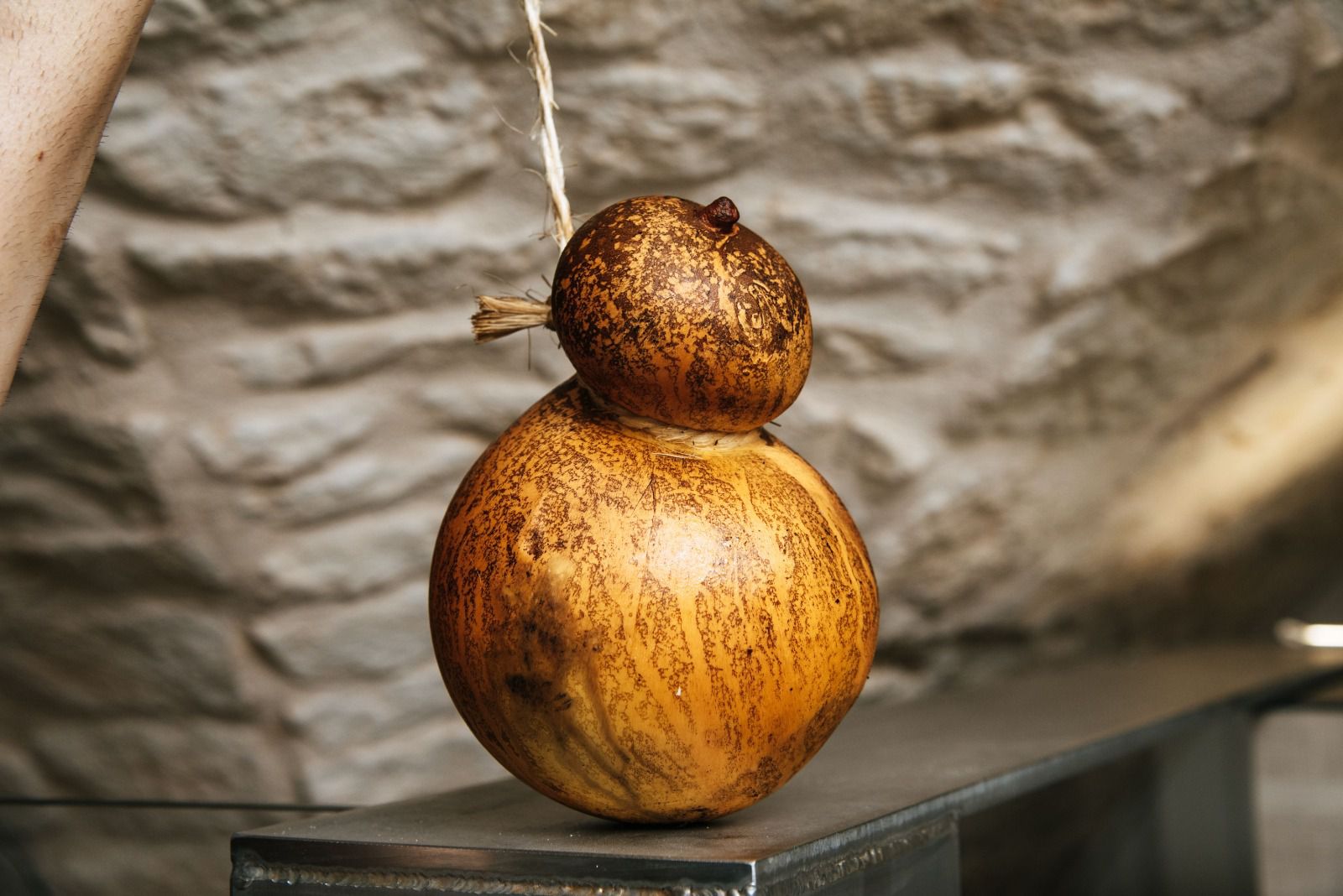 La forma della scamorza affumicata è piuttosto caratteristica: è una sorta di pera, più larga nella parte sottostante e con una piccola testa alla sommità, che può risultare più o meno accentuata. È proprio la sua forma tagliata nella parte superiore ad avere ispirato il nome di questo formaggio: scamorza deriva infatti dal verbo “scamozzare”, che significa letteralmente “togliere una parte”.